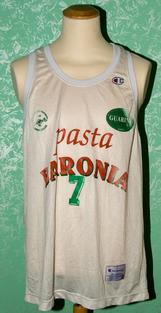 Nel campionato che sancisce la promozione in serie A2 con lo spareggio di Ancona, il 29 maggio 1997 con la Gaverina Bergamo, la Scandone rinnova lo sponsor con Pasta Baronia, che è presente anche dietro la maglia sul numero, ma cambia lo sponsor tecnico che sarà Champion sempre di Guarino Sport. Anche quest’anno sulla maglia verde, più scura rispetto agli anni precedenti, lo sponsor è di colore bianco con contorno rosso, mentre su quella bianca è di colore rosso con contorno verde.Anche quest'anno la prima serie di maglie verdi aveva lo sponsor di colore rosso, ma fu cambiata dopo qualche partita perché risultava illeggibile, e riutilizzata solo nella partita di festeggiamento per la promozione. Il numero è posizionato al centro, sotto lo sponsor, a destra il logo della Scandone e a sinistra quello dello sponsor tecnico. Sul pantaloncino in basso a destra c’è il numero, mentre a sinistra lo sponsor, il logo della Scandone e quello di Guarino Sport. Un grazie speciale per la maglietta di Frascolla bianca è per Lucio “il sargente”.