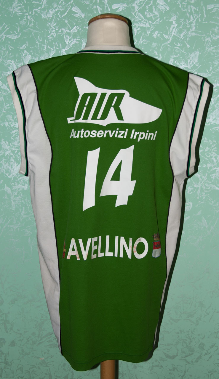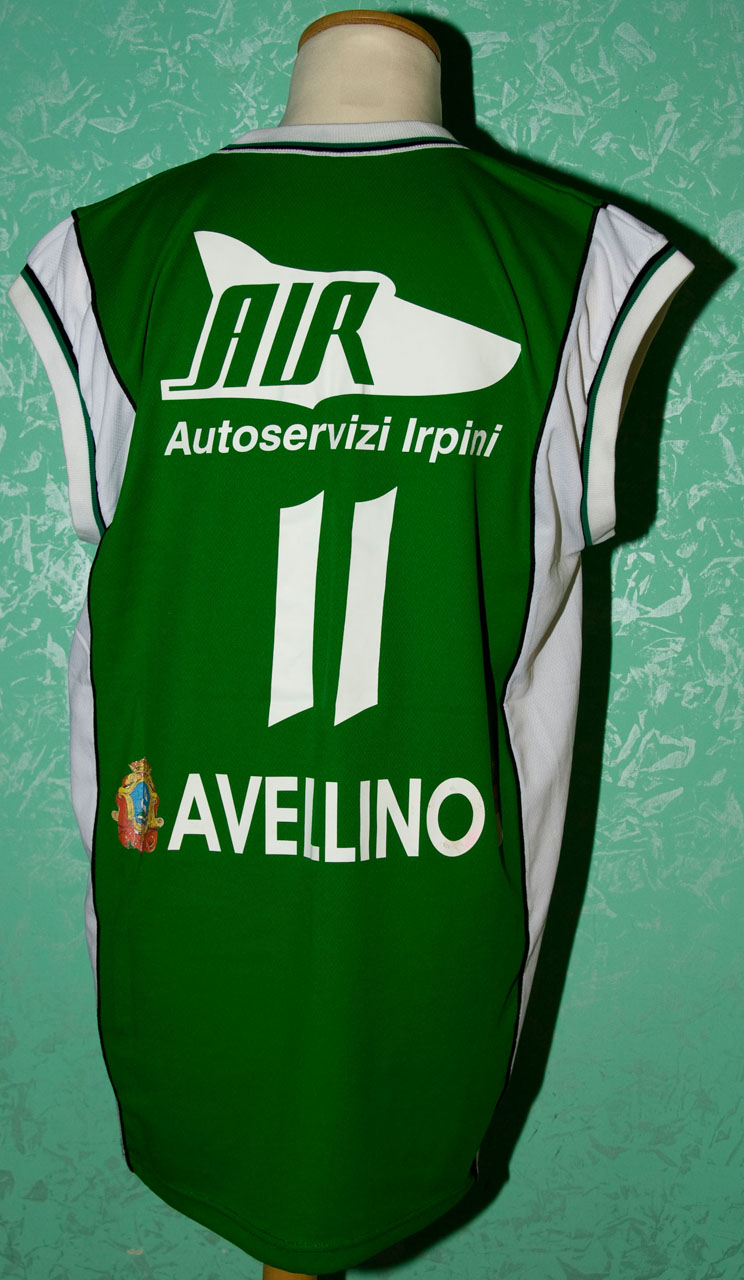 | Nel terzo anno di serie A1 cambia sia lo sponsor che diventa A.IR. che quello tecnico che è Royal, che si trova alla destra della maglia. A sinistra oltre il logo della Scandone ,questa volta stampato, c’è quello della legabaket, e il numero è posizionato al centro sotto lo sponsor, che si trova anche dietro oltre alla scritta Avellino. Le maglie hanno una banda laterale bianca e verde, invertita rispetto al colore della maglia. Durante il corso del campionato è stata fatta un’altra serie di maglie con l’aggiunta di un secondo sponsor B.C.C. Valle dell’Irno, in alto a destra sotto il logo della Scandone che non è più stampato ma cucito sulla maglia. Un grazie speciale per le maglie di Vanterpool e Collins è per Raffaele De Simone, per quella di Grgurevic (bianca) a Ivan Giuditta, per quella di Urciuoli per Beppe Adamo e per quella di Gecevski per Alessandro Grassia. |